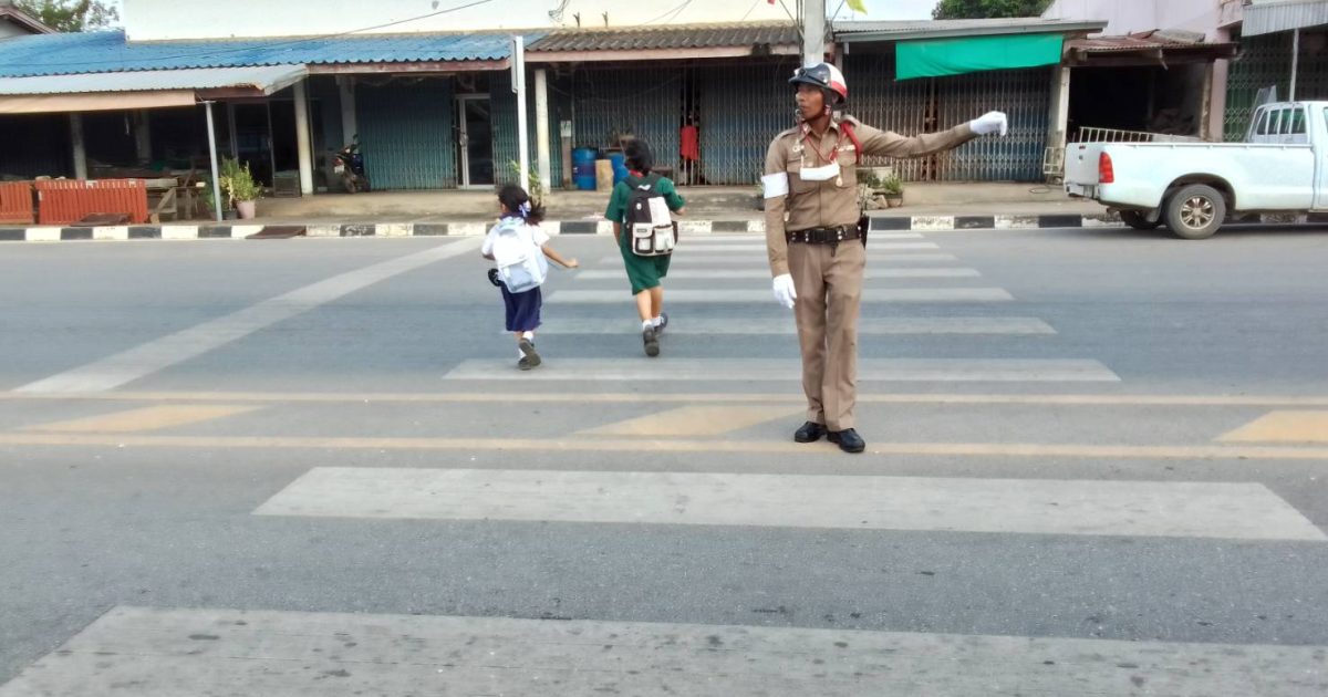 พร้อมกันดูแลการจราจรหน้าโรงเรียนชุมชนบ้านเมืองการุ้ง