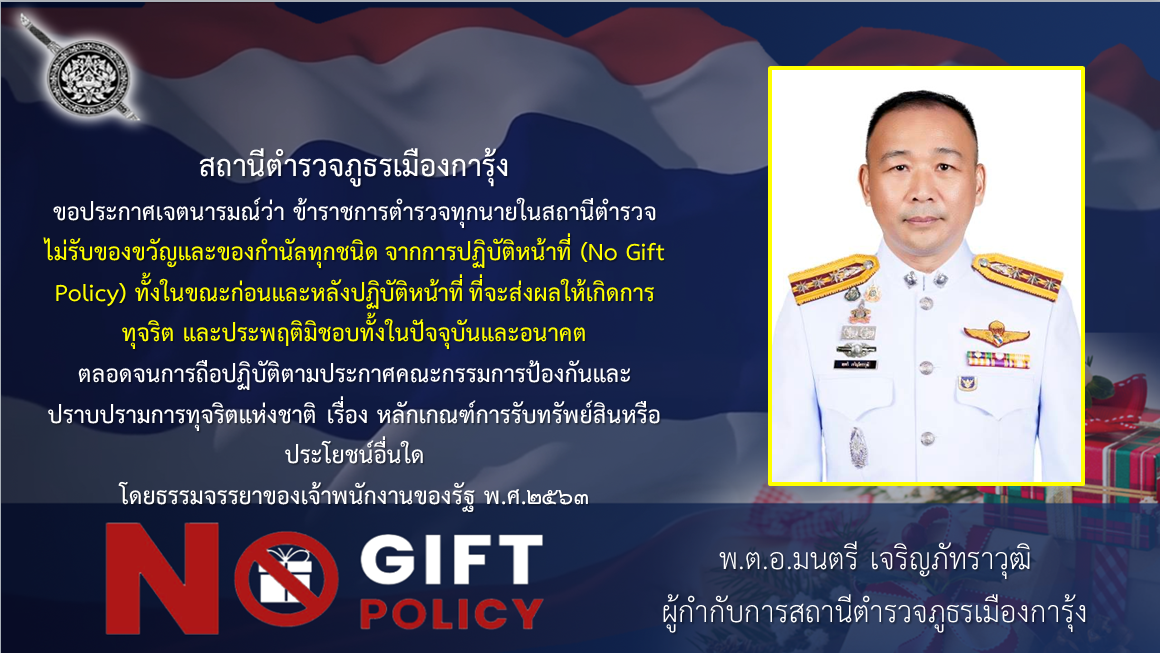 เรื่อง เจตนารมณ์ที่จะไม่รับของขวัญหรือของกำนัลทุกชนิดจากการปฏิบัติหน้าที่ ประกาศ เจตนารมณ์ที่จะไม่รั