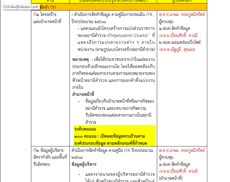 O24 : มาตรการการยกระดับคุณธรรม และความโปร่งใสภายในหน่วยงาน