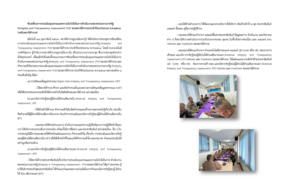มาตรการการยกระดับคุณธรรม และความโปร่งใสภายใน สภ.เมืองการุ้ง